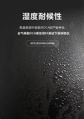 高温高湿环境是对OCA的严峻考验,全气候型OCA需在双85测试下保持稳定: