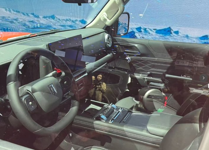 内饰方面,透过车窗能看到车内布局比较时尚。结合现款车型搭载14.6英寸触控式液晶中控屏以及4750/1930/1903mm的车身尺寸,该车在舒适与科技体验上也很到位。