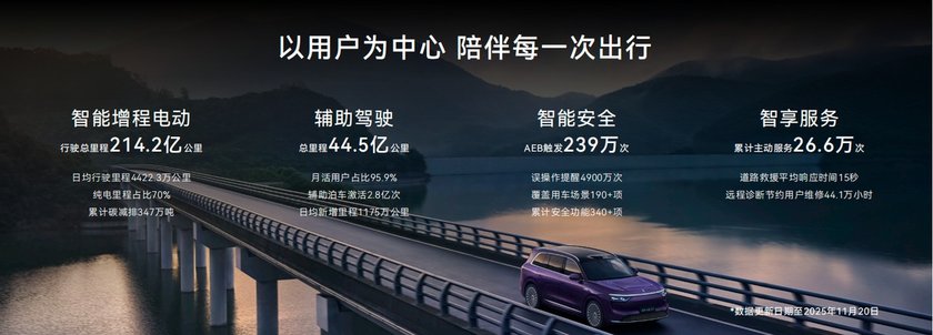 截至目前,问界已得到90万用户的信任,智能增程电动行驶总里程超214亿公里,纯电行驶里程占比达70%,辅助驾驶总里程已超过44.5亿公里,辅助泊车激活次数达到2.8亿次,凭借硬核产品实力与用户口碑沉淀,持续领跑新能源赛道。