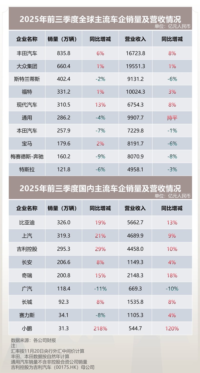 2025年临近收官,全球汽车业正面临形势严峻的阶段性调整期。三季报数据显示,全球头部车企均出现增长乏力现象。