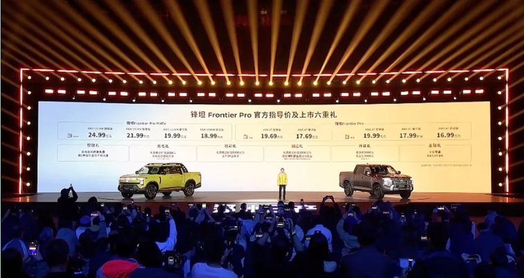 11月27日,郑州日产锋坦Frontier Pro全球首发,正式上市,燃油版和插电混动版同时上市。燃油版一共有5款车型,售价为16.99-19.69万元,插电混动版一共有4款车型,售价为18.99-24.99万元。与预售价相比,价格有所下降,更具性价比。官方提供了智联礼、充电礼、炫彩礼、圈层礼、升级礼、金融礼六大上市权益。
