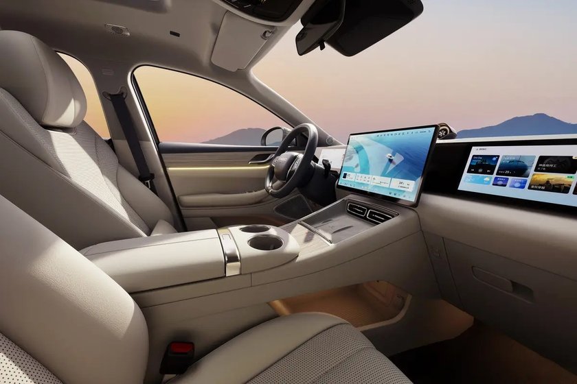 新车的软包比例达到了90%,触手可及之处均足够亲肤舒适,视觉上也呈现出充足的豪华氛围。同时,整车做了大量NVH优化,还拥有主动降噪系统,加上前排双层夹胶静音玻璃以及前后副车架柔性连接,为车内乘客带来更为安心的座舱环境。