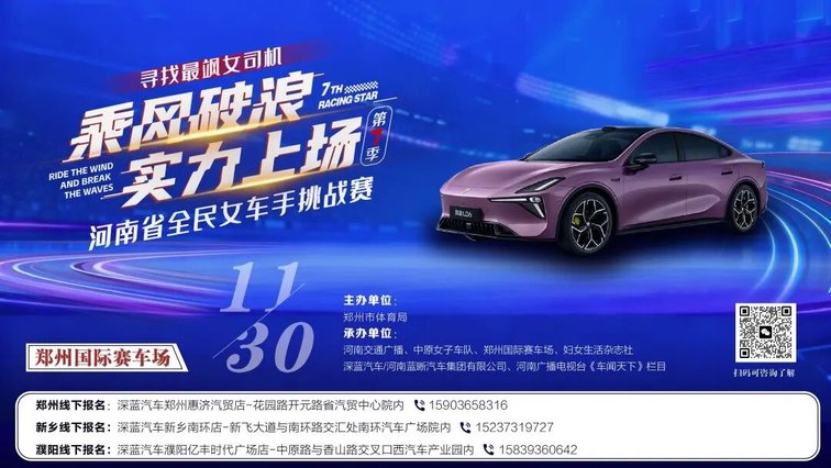 官宣!河南省全民女车手挑战赛第7季赛事官方指定用车深蓝L06!