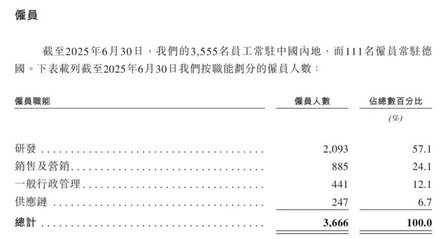 阿维塔拥有3555名员工,其中研发人员达2093人,占比57.1%。