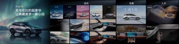 星途ET5的超豪华感知始于“一眼心动”。采用新奢设计的自然恒韵美学设计语言,汲取自然本色,5种外观色+2种内饰色为用户带来了更多样高级的车色选择;内饰采用中轴对称的东方设计,自带典雅贵气,营造视觉与身心的绝对平衡感。结合风的气势、玉的温润、贝的高贵、星的璀璨,星途ET5前脸标志性的“贝形大灯”与尾部由472颗LED灯珠组成的“星瀚灯带”,不仅拥有极高的辨识度,更仿佛在流动的光影中雕刻时间。