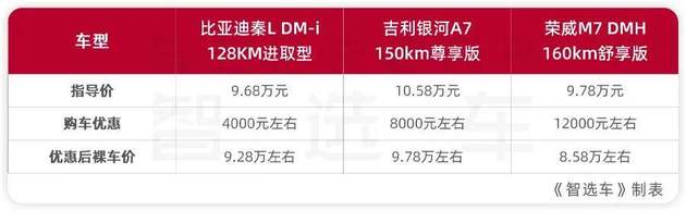 预算10万买插混B级车,秦L DM-i、银河A7、荣威M7 DMH怎么选?