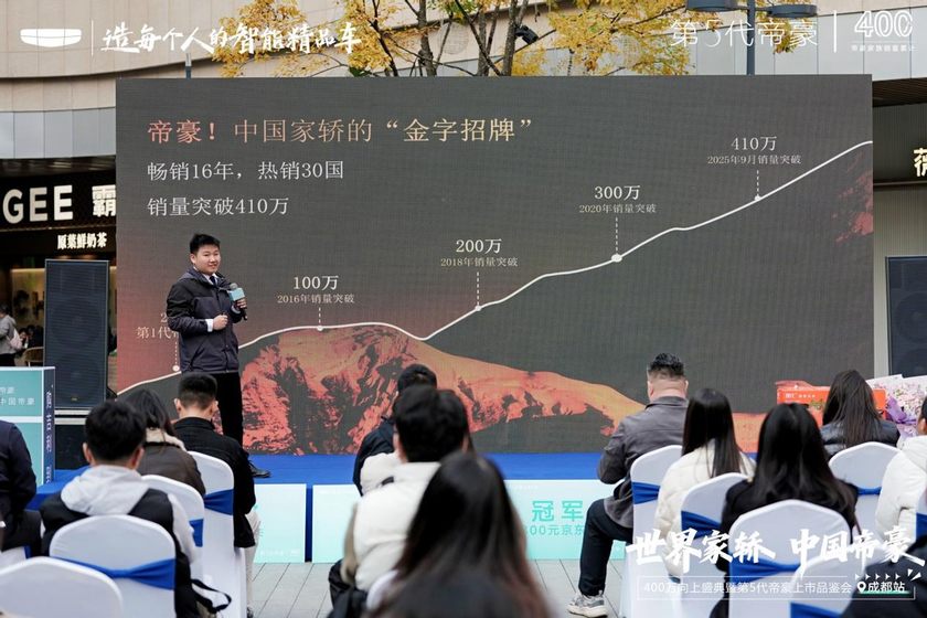 2025年11月30日,成都天府和悦广场热闹非凡,“400万向上盛典暨第5代帝豪上市发布会(成都站)”活动在此隆重举行。