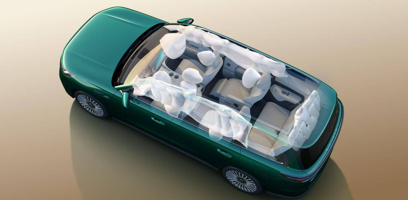 2025年开启的自主品牌新能源大型SUV销量火爆的趋势势头不减。2025年自主品牌新能源大型SUV销量同比约增长60.8%(截止10月,预计年销量可超过50万辆),2024年同比约增长67.0%。目前在售的新能源大型SUV有10款车型,新上市的有5款:腾势N8L,岚图泰山,零跑D19,风云T11, 以及宝骏华境S。这5款车型目标都聚焦在其精准定位、定义、定价上,以形成差异化竞争。如,纯电式零跑D19有细分市场最长CLTC综合续航里程720km;增程式零跑D19有细分市场最长纯电CLTC综合续航里程500km;宝骏华境S有细分市场上最低售价(15-20万元左右);风云T11配置最强被动安全组合11个安全气囊加88%的高强度应用,如下图所示;岚图泰山配置国内自主品牌首款三腔空气悬挂,