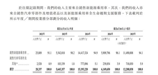 销量的稳步增长,直接促进了营收的爆发。2022年营收2834万元,2024年突破151.95亿元;2025年上半年同比增长98.5%至122.08亿元。营收增速快于销量增速,源于其产品结构的升级——30万元以上车型占比从2023年的14%提升至2025年上半年的42%,高端化的成效十分显著。