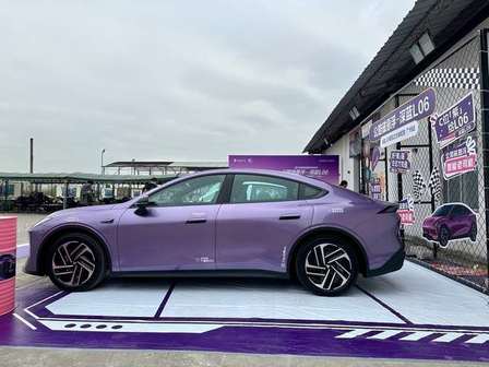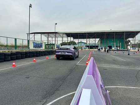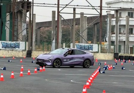但真正改变我对L06印象的,是开上它之后的表现。试驾包含飞坡、绕桩、紧急变线等项目,我原本以为这个价位的轿跑在激烈一点的场景里多半会“形态松散”,结果第一圈飞坡就把我这个想法否掉了。深踩电门冲上坡道的那一下很带劲,车身短暂离地带来轻微悬浮感,落地瞬间却出了奇的稳。没有多余的摆动、没有被动的“拖一步”,底盘像是被一只看不见的手托住一样,落下的动作干脆利落。