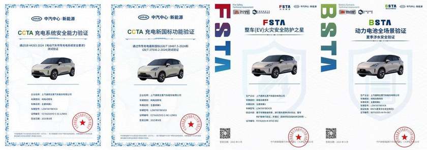 中汽中心(中国汽车技术研究中心)作为国内汽车行业权威技术服务机构,其颁发的BSTA、FSTA、CCTA等认证,基于多维度极限场景测试,全面评估动力电池及整车的安全性能,为消费者提供专业、可靠的购车参考。