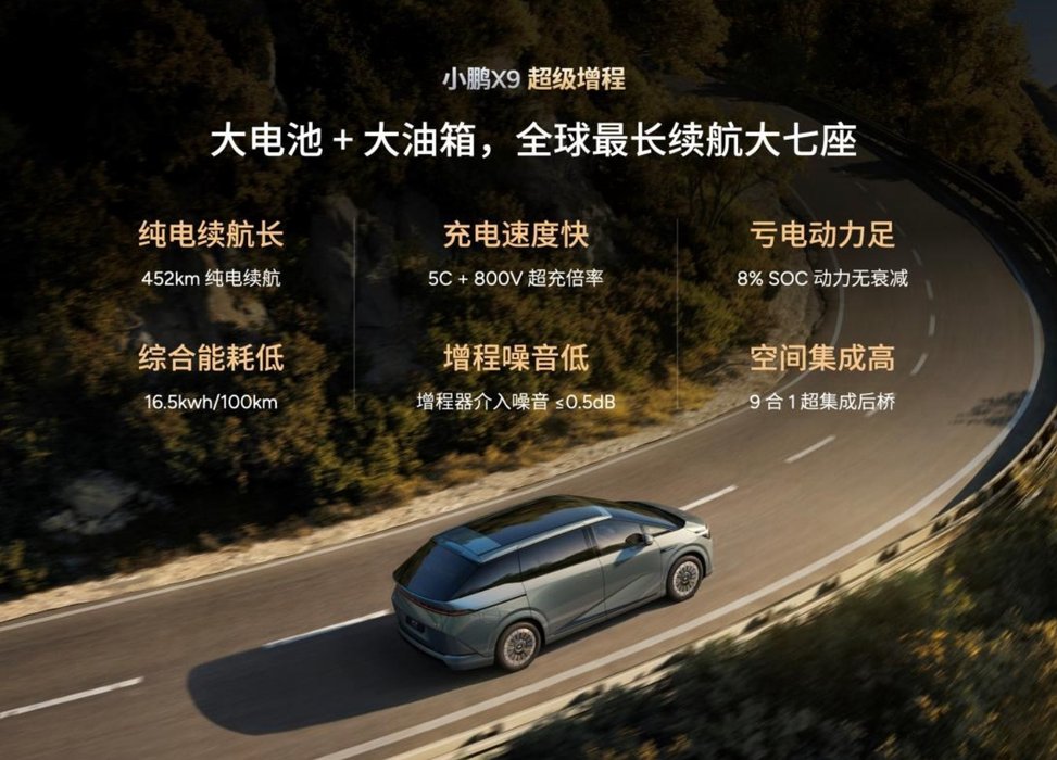 在不久前,小鹏汽车实现第100万辆整车下线,正是小鹏X9超级增程,至此小鹏汽车开启“纯电+增程”双轨驱动。