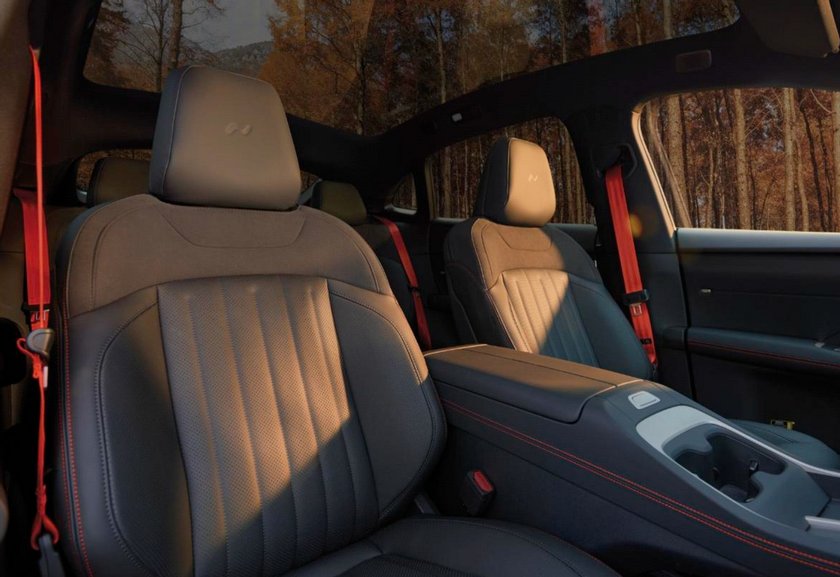 车内也为全黑设计,除了安全带和缝线是采用橙红色,整体的氛围同样很战斗。