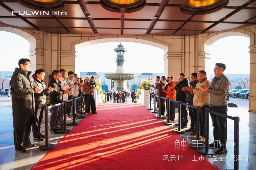 12月3日,风云T11天津上市品鉴会即首批车主交车仪式在西夫拉姆酒堡隆重举办。活动现场将酒堡建筑的欧式古典格调与车型的东方智慧美学进行巧妙融合,通过沉浸式品鉴场景,让与会嘉宾深入领略到风云T11作为"智享大六座旗舰SUV"的非凡气度,见证了当代豪华出行生活如何真正"触手可及"。