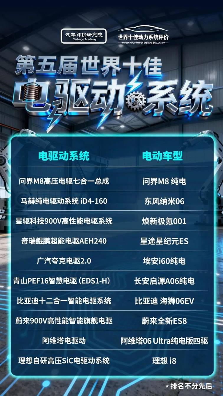结合客观测试数据与专家主观评价,经过多轮投票与深度研讨,第五届世界十佳电驱动系统评价最终结果现已正式确定,具体名单如下: