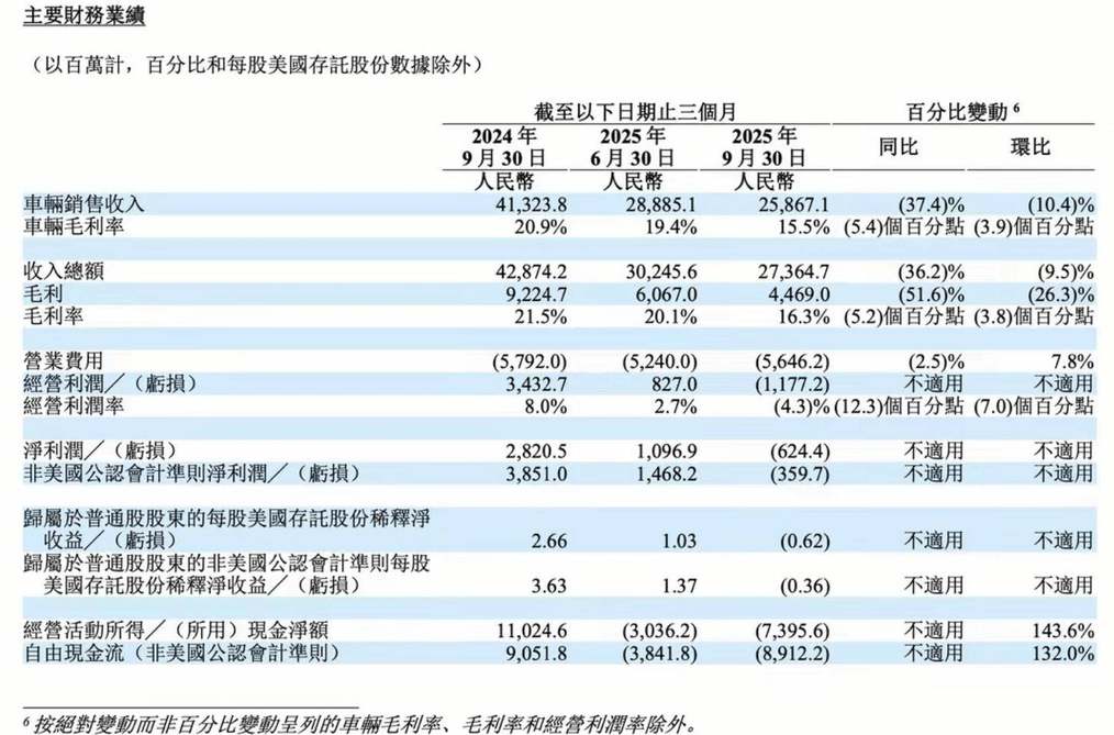 其第三季度财报显示,理想汽车总营收274亿元,同比下滑36.2%,净亏损达6.24亿元,较去年同期28亿元的净利润形成鲜明反差。而且官方对第四季度预期同样保守,预计交付量10万至11万辆,同比减少30.7%至37.0%,收入同比降幅也将达34.2%至40.1%。