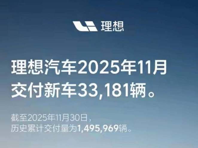 来自理想汽车公布的销量数据显示,其11月交付新车仅有33,181辆,较去年同期的48,740辆同比下滑31.92%,而且这已是其连续第六个月销量同比下滑。截至11月底,理想汽车今年累计交付362,100辆,同比减少18.1%,这意味着,曾经的新势力"销冠"正经历前所未有的市场阵痛。