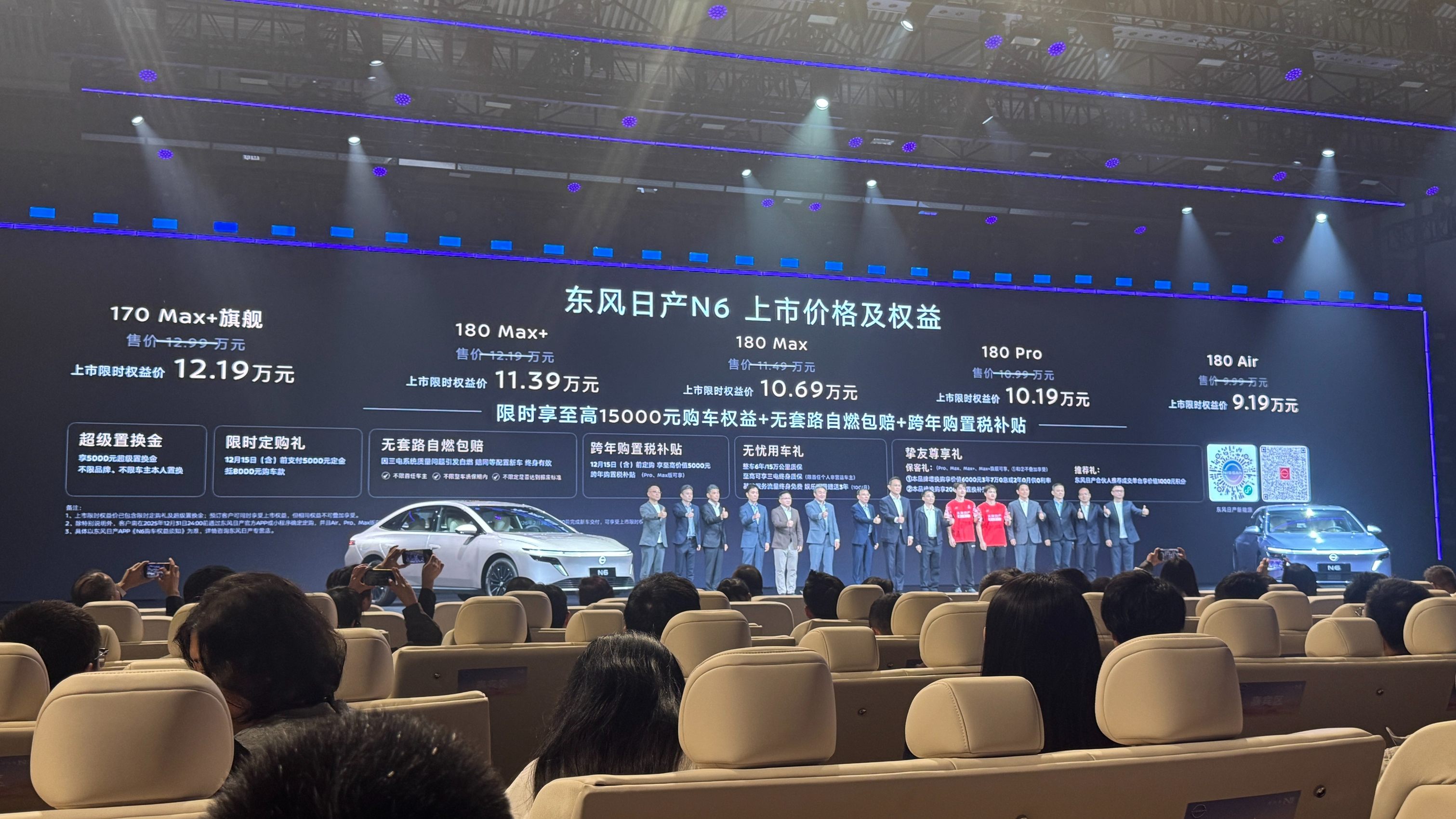 2025年12月1日 日产 N6正式上市,新车共发布5款车型,指导售价区间9.99万元--12.99万元。动力上,搭载1.5L插混系统,纯电续航180km。