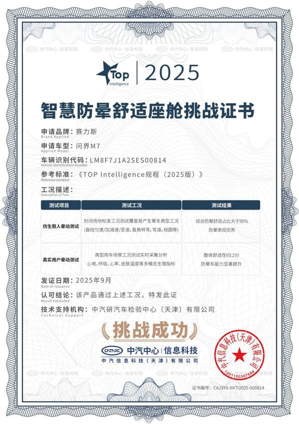 也正是这份对体验的极致打磨,全新问界M7顺利通过了中汽研严苛测评,成功斩获“座椅舒适之星”认证。