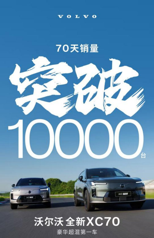 12月5日,沃尔沃全新XC70累计销量正式突破10,000辆!自9月26日上市以来,仅用70天即达成这一里程碑,迎来市场“开门红”,不仅印证了消费者对这款“全能型”豪华混动车型的青睐,更充分彰显其“豪华超混第一车”的产品实力。