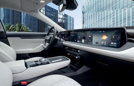 内饰部分,中控台造型基本没变,依然是一块长条屏,颇有科技感,下方增加了一排实体按键。换挡旋钮附近区域的布局有调整,可以更方便地放下手机等物品。车机系统有升级,搭载新一代SYNC+智行互联系统,车机芯片为骁龙8155,运行更流畅。