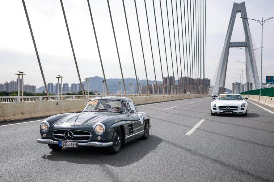 在2025年“1000 Miglia Experience CHINA行千里经典车嘉年华”活动上,梅赛德斯-奔驰作为战略合作伙伴,携一系列经典车型组成致敬车队亮相,各个年代经典的三叉星徽代表齐聚大湾区,通过数款经典车的历史背景与经典设计,将时间闪回至几十年之前,回忆起曾经那段美好的岁月;而全新的星徽座驾更以先锋科技,为人们展现出了品牌的创新与豪华,一场属于百年奔驰的时光之旅便由此展开。