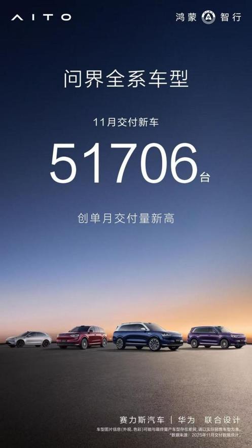自上市以来,问界始终将用户思维贯穿于产品与服务之中,并由此赢得了市场的广泛认可与持续成功。截至目前,问界全系累计交付已突破90万辆,其中11月单月交付量超过5万辆,展现出强劲的市场增长态势。