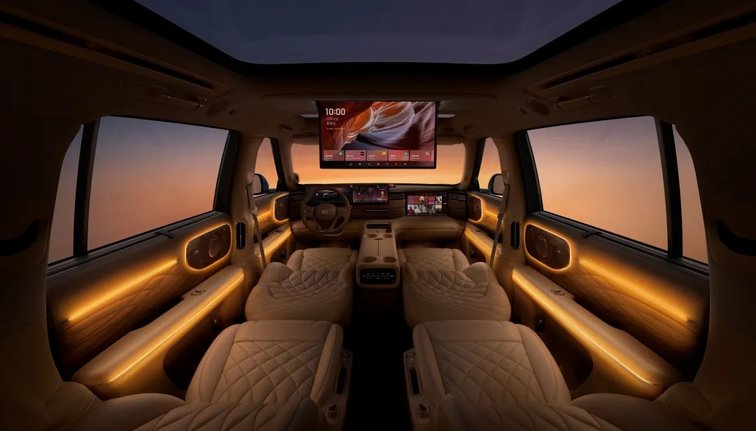 配置方面,两款车型的共同点远远多于差异点。均配备了前后驻车雷达、360度全景影像、Thor芯片、LED大灯、前后排隔音玻璃、感应雨刷。车内则同样搭载27.1英寸大屏、15.6英寸副驾娱乐屏、8295P车机芯片、真皮座椅、主副驾电动调节。座椅功能极为丰富,前排座椅加热/通风/按摩、二排座椅加热/通风/按摩、三排座椅加热全部标配。还配备了主动式环境氛围灯、自动空调、后排独立空调以及车载冰箱,真正实现了“入门即满配”。