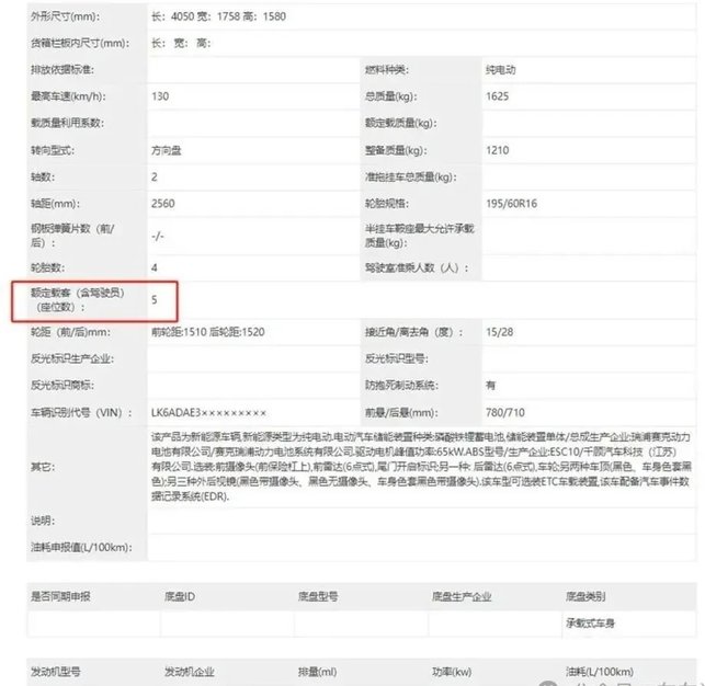 车尾部分,方圆造型的灯组与车头形成呼应。尺寸方面,新车长宽高分别为4050/1750/1580毫米,轴距达到2560毫米。在配置选装方面,该车提供了前摄像头、前后雷达、尾门开启标识、多种轮圈样式以及两种车顶颜色可选。外后视镜也有三种版本,包括黑色带摄像头、黑色无摄像头以及车身色套黑色带摄像头。