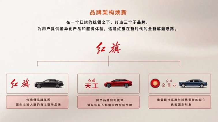 此次标识调整的背后,是红旗品牌整体运营逻辑的深度重构。此前按能源形式划分产品类别的模式已调整,取而代之的是一套全新的品牌架构体系。