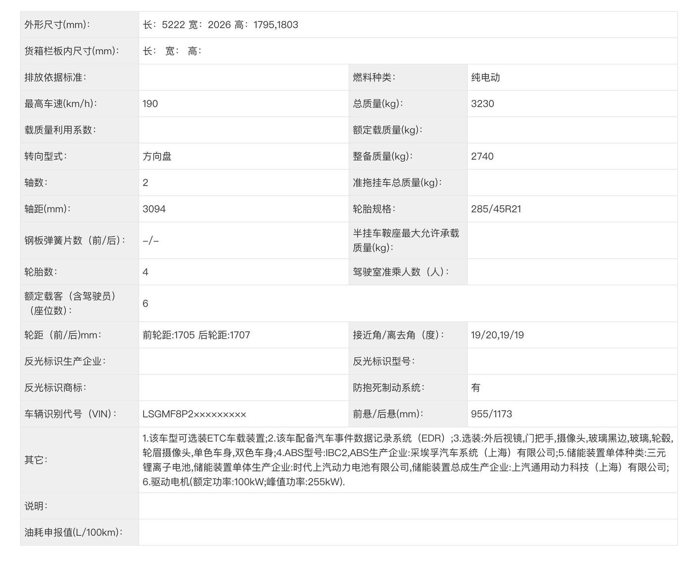 动力方面,新车提供单、双电机两种动力可选,其中单电机版本峰值功率为255kW,搭配三元锂电池;双电机版本的前电机183kW、后电机260kW,搭配三元锂电池。