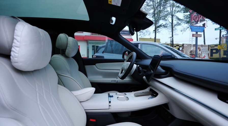先介绍eπ008静态的基本信息。这台车有超5米车长和超3米轴距,可以轻松的布置五张座椅,后备箱空间也很宽裕。不过在超尊版有冷暖冰箱、后排屏和前排座椅加热/通风/按摩的情况下,后排座椅连加热都没有,还是给后续年款留出了升级空间。