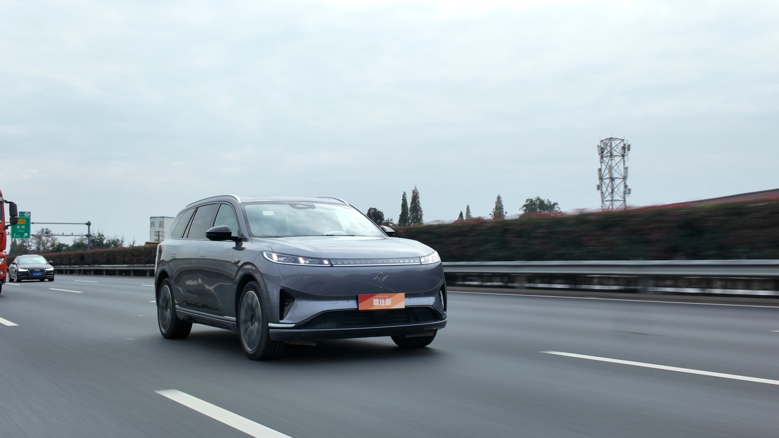 在100km/h快速单移线时,eπ008对于这样激烈的操作还是有克制,前轮回正后,后电机会带着很强的抓地力进行调整,电子限滑介入也很直接,几乎就是把带着左右摆动的车尾硬按在了车道中,虽然体感有些粗暴,但确实对极端情况下的安全性有提升——毕竟在双移线变道或大幅度S型行驶的测试环境下,我能感知到近2.2吨体量带来的负荷,虽然eπ008的侧倾还算可控,但后驱动态延迟还是有些明显,需要靠科技来拉齐路线。