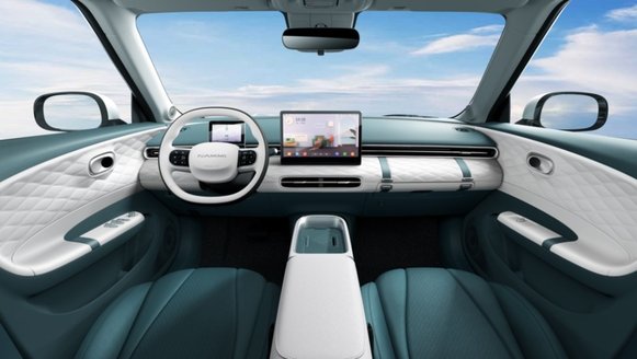内饰部分,纳米01迎合潮流,采用时下流行的新能源极简元素,取消了大部分实体按键,中控屏尺寸达到12.8英寸。值得一提的是,纳米01的中控台和内车门板上采用了大面积的菱形格纹理,这在同级是比较少见的。