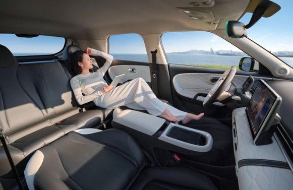 基于纯电平台的布局优势,纳米01虽然定位A0级车,但轴距达到2663mm,为车内空间打下了良好基础,后排地板纯平,头部和腿部都有充足的空间。将前排座椅的头枕拆下后,往后放倒,可以和后排组成一个大通铺,更好地方便用户休息。