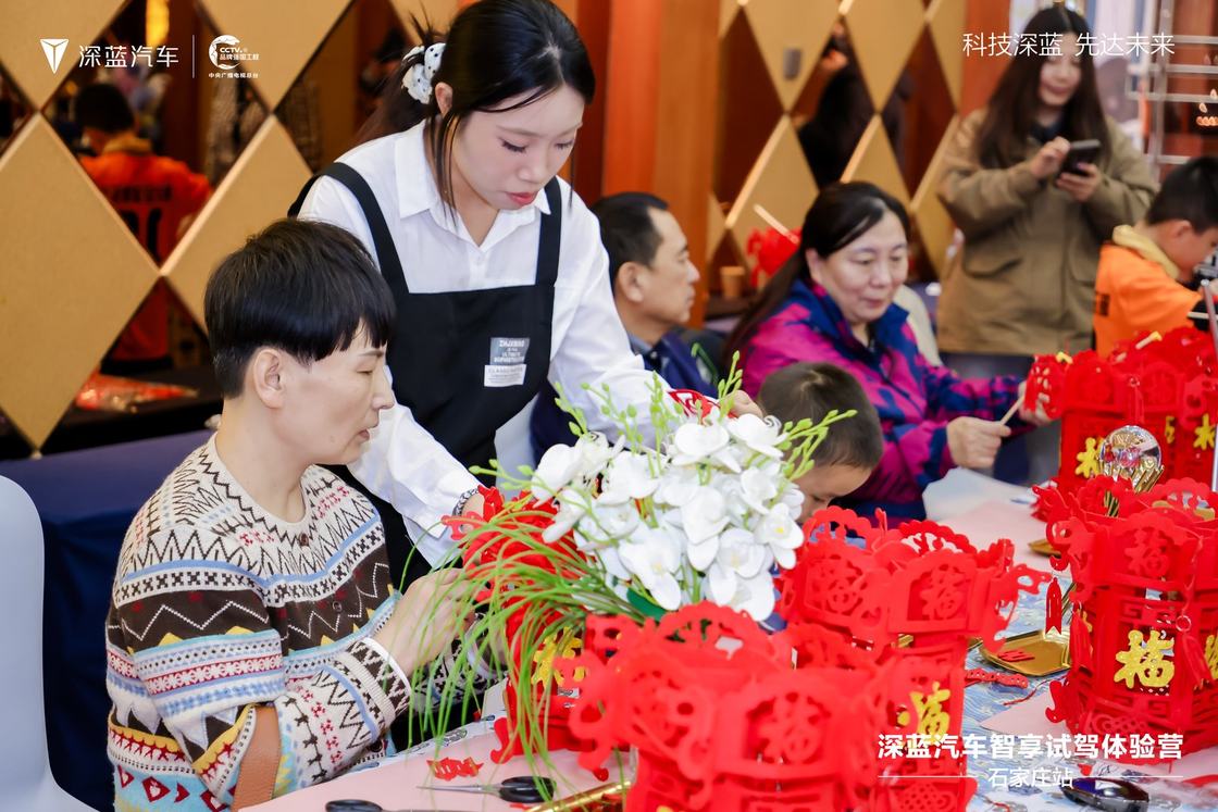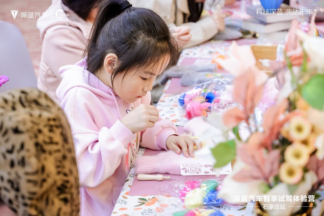 不止于驾控,深蓝更致力于营造具有情感共鸣的场域。深蓝汽车在活动现场设置了"乐活聚场"互动专区。非遗宫灯DIY、羊毛毡手套制作等环节,让参与家庭在轻松愉悦的氛围中感受深蓝品牌的温度。晚宴环节更是以深蓝色系为主题,通过精致的场景布置与贴心的服务,为嘉宾营造出温馨而尊贵的交流空间。