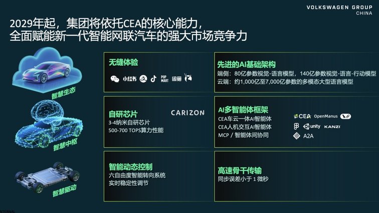 在这里我们不仅跟小鹏形成架构领域的战略合作,同时我们跟VCTC形成CEA One Team,也就展示CEA架构对大众集团在中国落地核心的承载架构。
