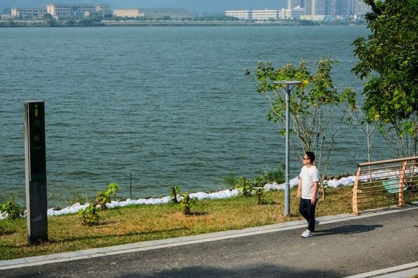 沿着大坝一直往前开,到达尽头后有一个小型停车场。下车后到达绿道,整个绿道环湖而建,湖边草地上也可以露营,漫步在湖边好不惬意。
