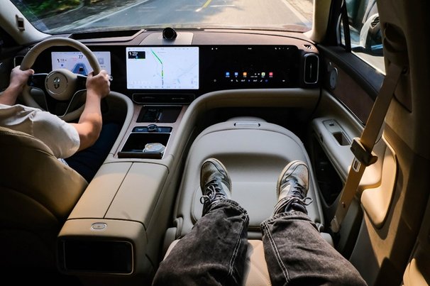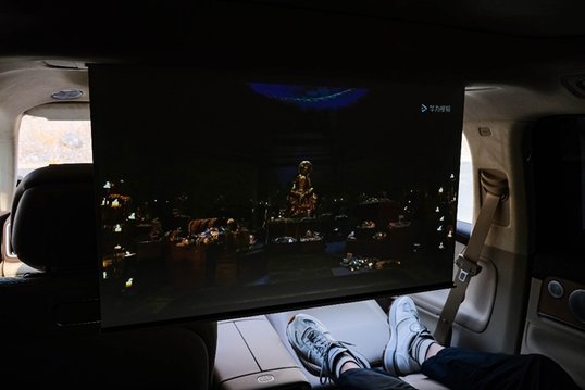 阿伟带我回到车上,借此向我狠狠地炫耀了一把问界M9的配置。“小艺小艺,打开后排零重力座椅,打开后排座椅加热、按摩,打开影院模式”,在这一番操作下来,车内瞬间变成了一个电影院,车规级投影巨幕加上25个扬声器,带来的视听震撼完全不输给IMAX影院。