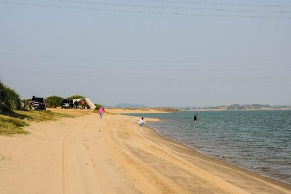 到达江边后,虽然草地已经失去了春色,但夕阳照映在草地上,反而多了一份秋色。最让人惊喜的是,江边还有着一大片沙滩,沙质细软干净,让人宛如身处海边。