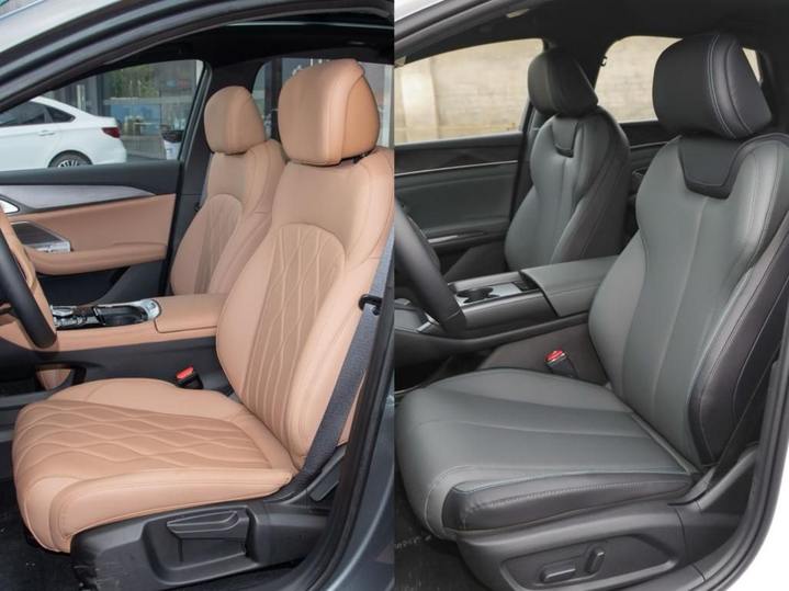 配置方面,两车都有全LED光源、自适应远近光切换、自动头灯、驾驶位无钥匙进入、远程启动,车内都有前双气囊、前侧气囊和前后侧气帘,都有带透明底盘的360度全景影像,怀挡式电子挡位、后排出风口和PM2.5过滤。咱们重点看看配置差异,除了前述的驾驶辅助与车机的不同,秦L较为领先的配置包括NFC钥匙、车载KTV、自带ETC和主驾驶电动调节。而银河A7较为领先的配置有18英寸轮圈(秦L是17英寸)、雨量感应式自动雨刮、可开启全景天窗、全车车窗一键升降、主副驾驶位化妆镜照明灯、外后视镜电动折叠和锁车自动折叠、后排中央扶手带杯架、车外扬声器。另外银河A7可选装16喇叭音响系统带驾驶位头枕喇叭,目前这个配置是免费赠送的。总体而言,银河A7在舒适性配置给得更多,显得更实在些。