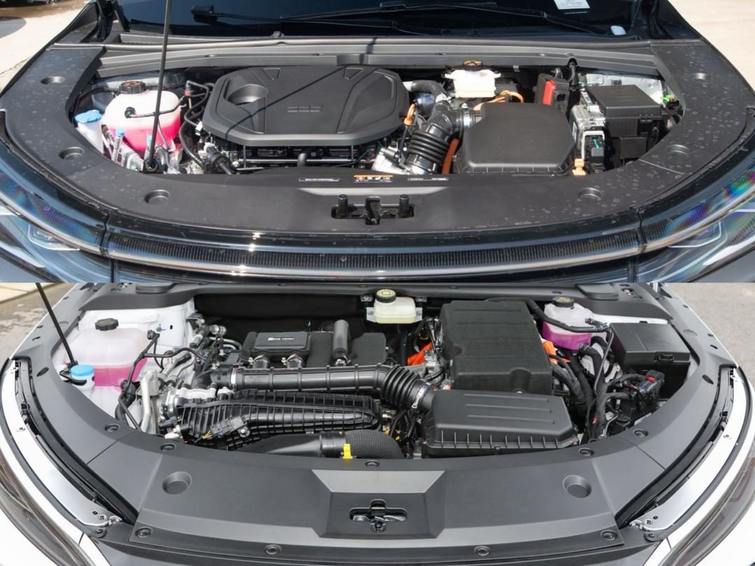 作为插混动力轿车,衡量用车的成本,跑长途要看亏电油耗,而市区代步要看纯电里程。两车在动力结构上有相似之处,秦L采用第五代DM技术,1.5L自吸发动机最高热效率达到46.06%,通过AI能耗管理,驱动力可在电机与发动机之间切换,让发动机始终保持在高效区间,同时7合1电机驱动效率也比较高(92%),因此能够获得NEDC工况2.79L/100km的亏电油耗,综合续航可以超过2000公里。而银河A7的EM-i插混技术同样很极致,它的1.5L发动机热效率更达到47.26%,是目前量产发动机中热效率最高的,系统同样有AI能耗管理,而且它的11合1驱动系统效率(93.1%)还更高,再加上车身风阻系数更低、整备质量略轻,它的亏电油耗同样也很低,CLTC工况是2.67L/100km,综合续航超过2100公里。