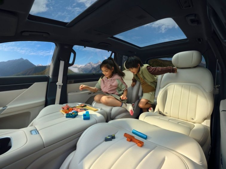 二排右侧零重力座椅支持十向调节、通风加热 + 十点式按摩,三排新增儿童座椅接口,双大床模式适配露营休息。零跑 C16 仅双侧滑座椅,舒适感差距明显。