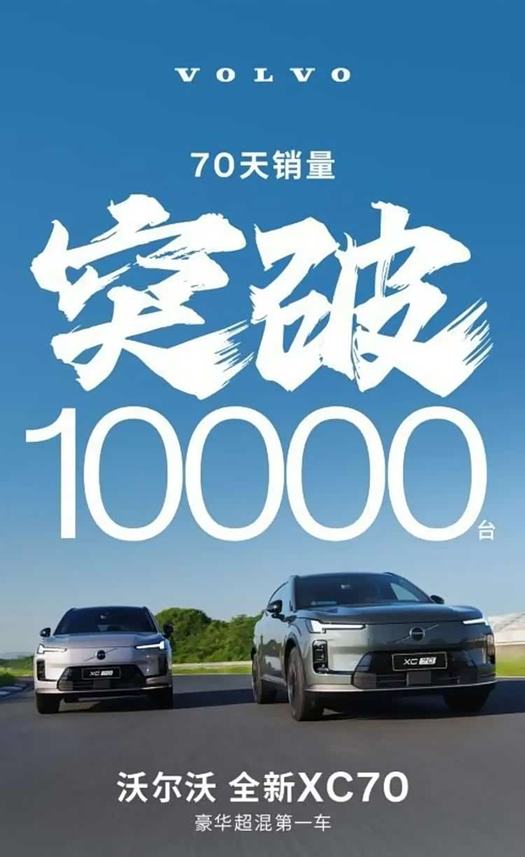 沃尔沃官方披露,全新XC70自9月26日上市以来,70天累计销量突破10000台。日均交付近150台,不仅刷新了品牌新车成长纪录,更成为跨国豪华品牌中少有的月销破5000台的插混SUV车型。