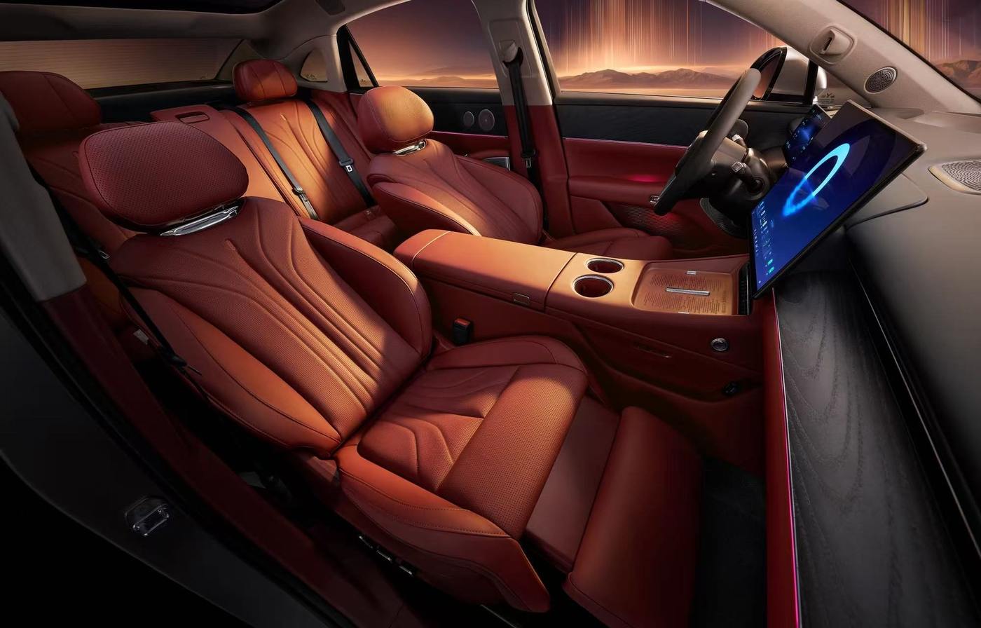 座舱体验围绕“座座皆首席”打造,车内实得面积4.2m²,配备1.21㎡超大全景天幕,搭配分段式遮阳帘,紫外线隔绝率超99.9%。车内高频接触面100%软包,非高频接触面也用了大量软材包覆,还辅以大面积地中海白栓木装饰。全系标配10层结构的豪华云朵座椅,副驾搭载NASA标准零重力座椅,能实现121°腿部与120°腰部零压角;副驾还有超大尺寸智能美妆镜,支持9种亮度与颜色调节,256色星河氛围灯可随音乐律动。