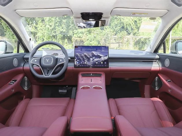 车内采用环抱式布局,通过真木装饰以及大面积的皮质材质包裹烘托出豪华感,拥有丹霞红、稻米白、烟山灰三种内饰颜色。中控中央搭载16.1英寸3K屏幕,内置鸿蒙智能座舱5.1系统,支持AI语音大模型和跨端交互。另外其还配备了10.25英寸液晶仪表、AR-HUD抬头显示、50W手机无线充电面板和四温区空调。座椅采用真皮材质包裹,前排+后排四个座椅均配备座椅通风/加热/按摩功能,副驾驶席提供零重力座椅。