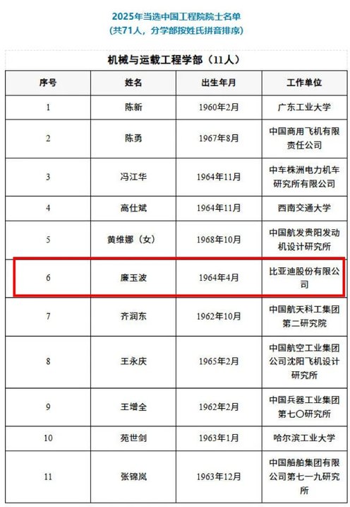 2023年,比亚迪集团首席科学家、汽车总工程师廉玉波第一次被提名院士,但并没有当选;到了2025年,第二次提名并成功当选,成为民营车企的首个院士,打破了以往院士普遍来自高校、科研机构的魔咒。
