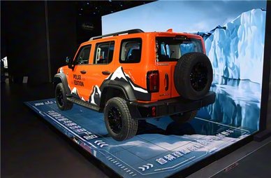 外观设计上,坦克300极地版在普通版方正造型基础上,通过专属元素强化了身份标识。车身以"极地橙"作为专属底色,这种颜色并非单纯的视觉设计,而是采用国际通用的救援安全色,在冰雪等低能见度环境中能提升识别度,具备实际使用价值。车身侧面点缀"极地锋芒"拉花,尾部镶嵌"极地荣耀徽章",让整车在保持硬派风格的同时,形成了独特的视觉记忆点。