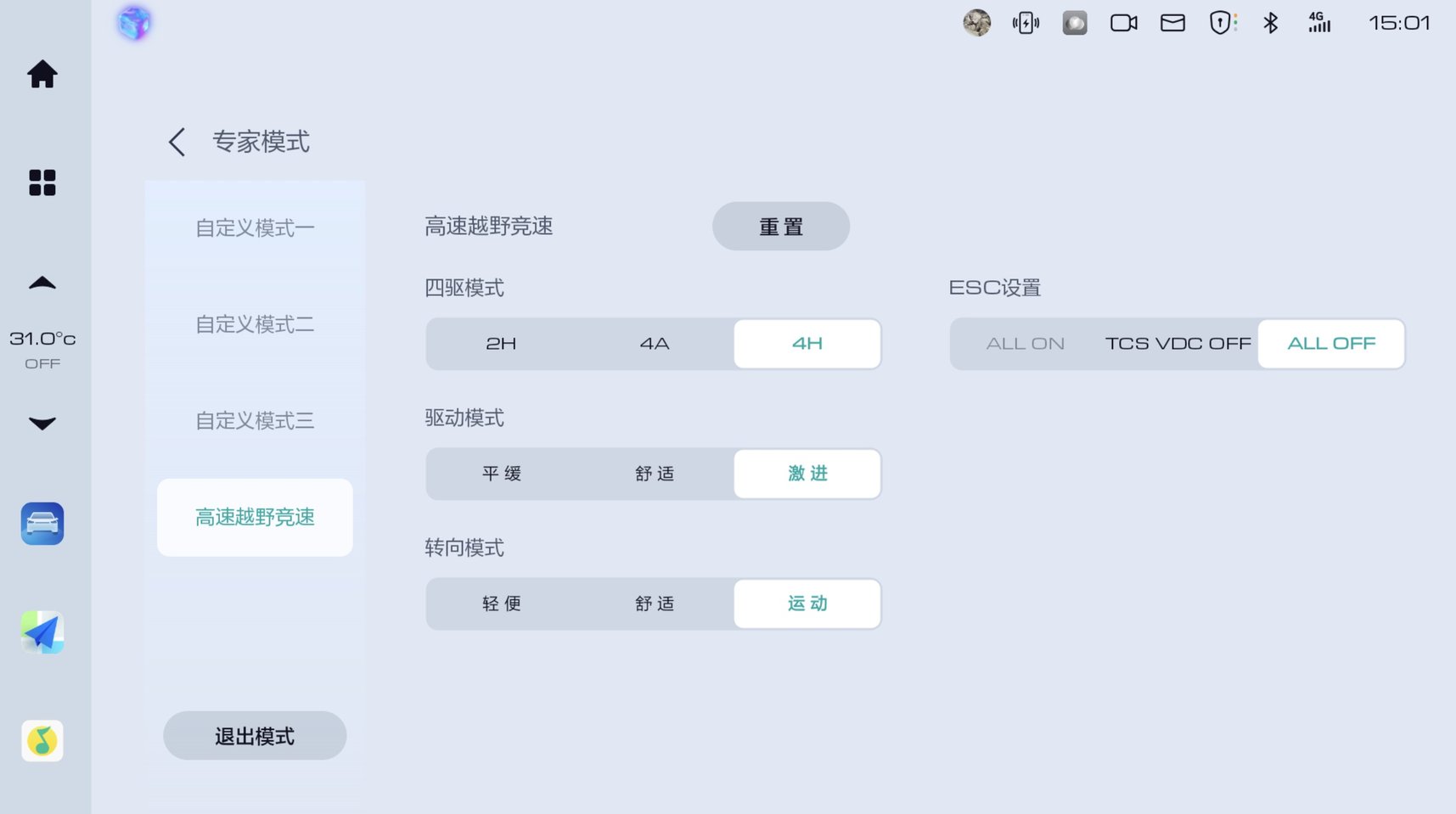 新车标配的“三把锁”(前/后桥电控差速锁+中央Mlock机械锁止)系统,能够精准分配四轮扭矩,即便单侧车轮悬空也能快速脱困。而新增的岩石模式与专家模式,更是让车辆在面对复杂路况时游刃有余。此外,车辆还配备了低速越野巡航、坦克转弯、540°全景影像等实用配置,进一步降低了越野难度,提升了驾驶安全性。