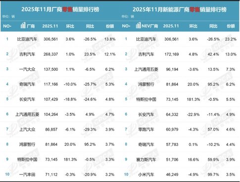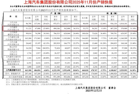 “谁能夺冠”,这也应该是11月销量公布之后,业内兴起的猜测。本以为比亚迪11月销量超48万、1-11月累计销量418万辆已经无敌,没想到上汽集团也达到了46.8万辆、累计410.8万辆。所以有人猜测,今年上汽集团会不会拿下12月冠军和年度总冠军?